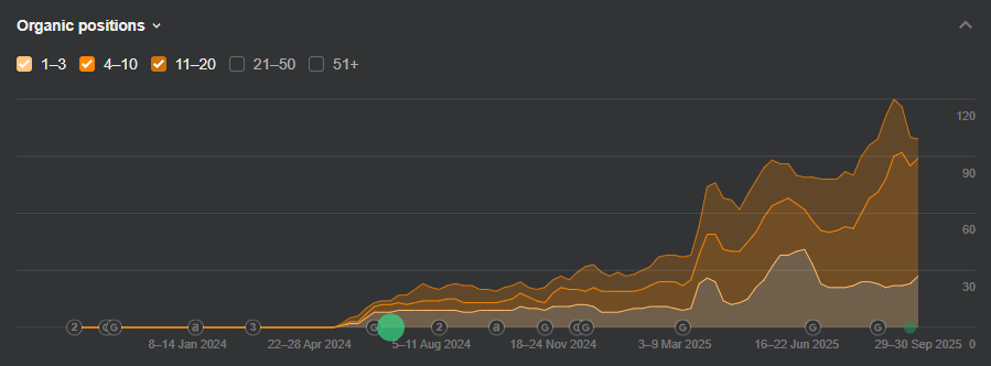 From the second month onward, the website experienced a significant boost in organic keyword rankings, even before backlinks were added.