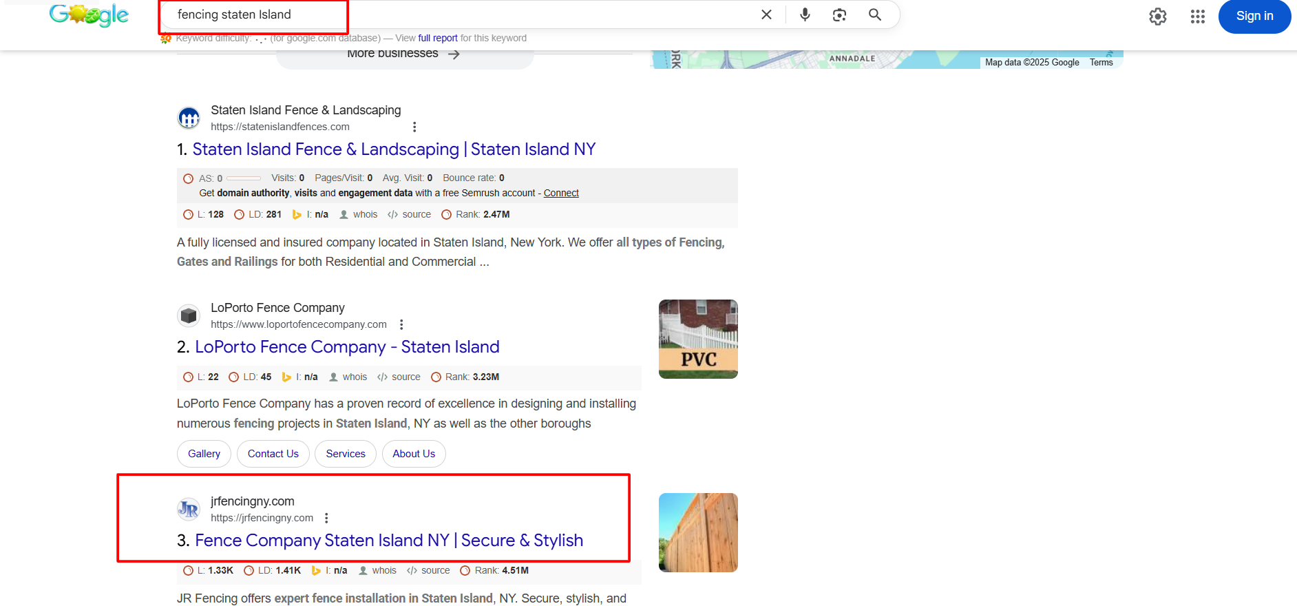 Missed Opportunities: They weren’t ranking for key local search terms like “fence installation near me” or “fencing contractor in Staten Island.”